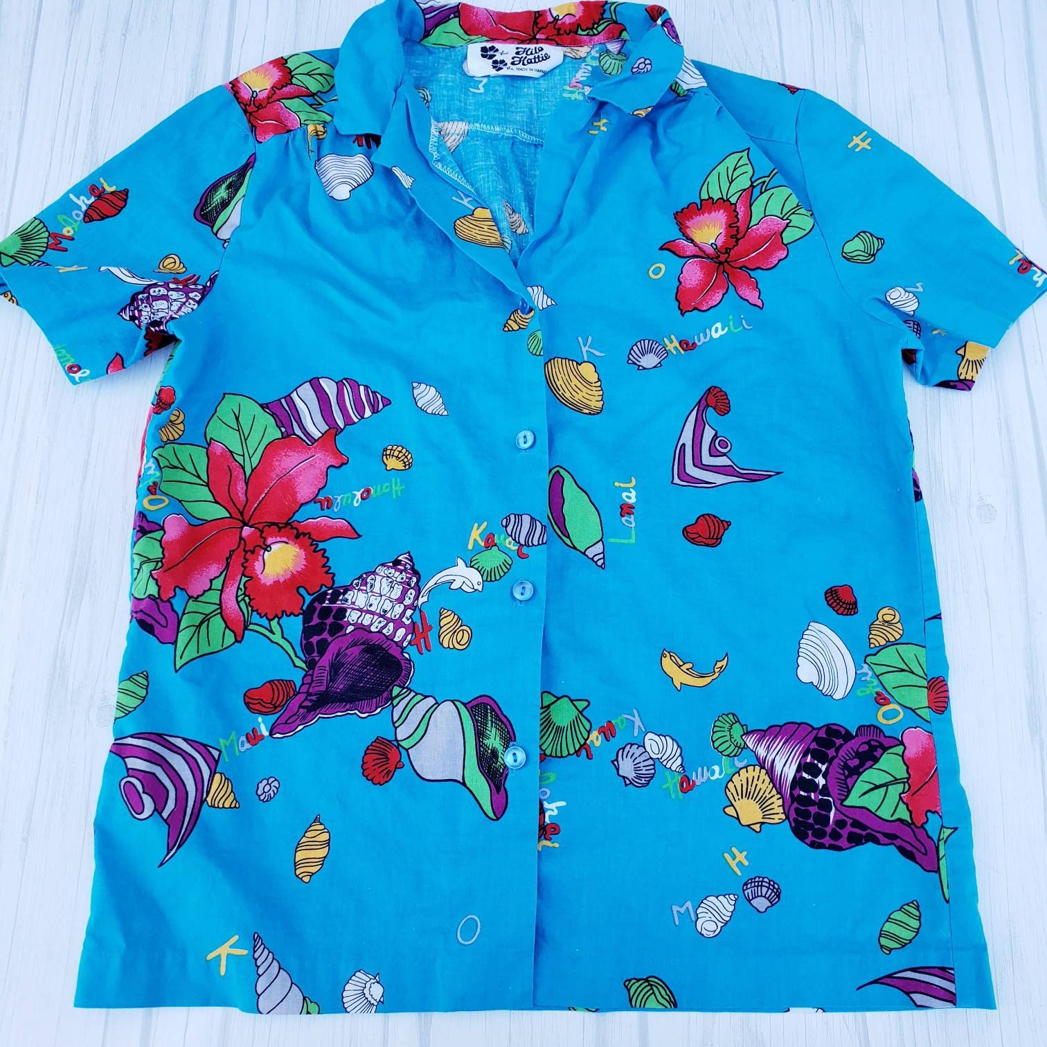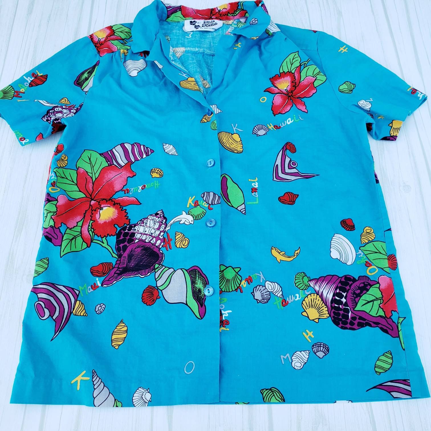 Vintage Hilo Hattie Aloha Hawaiian Shirt Bright Blue Short Etsy